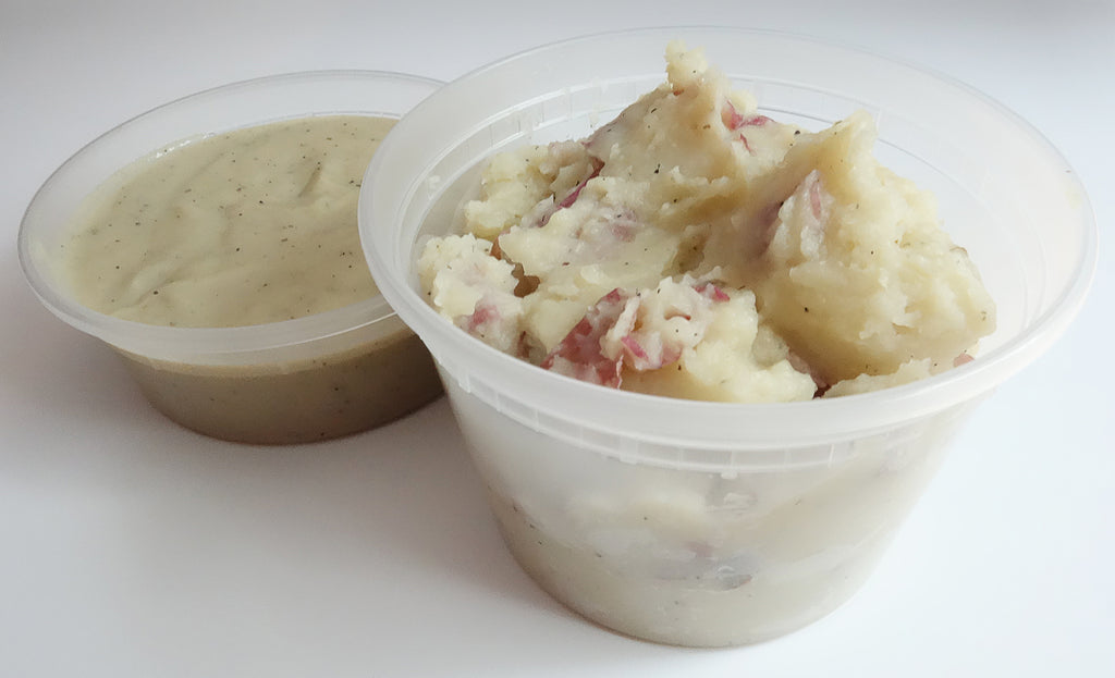 16 fl oz. container of our classic Mashed Potatoes and 8 fl oz. container of our classic Country Gravy, made with fragrant herbs including sage and thyme for a savory homemade taste. Serving suggestion: 2-3.